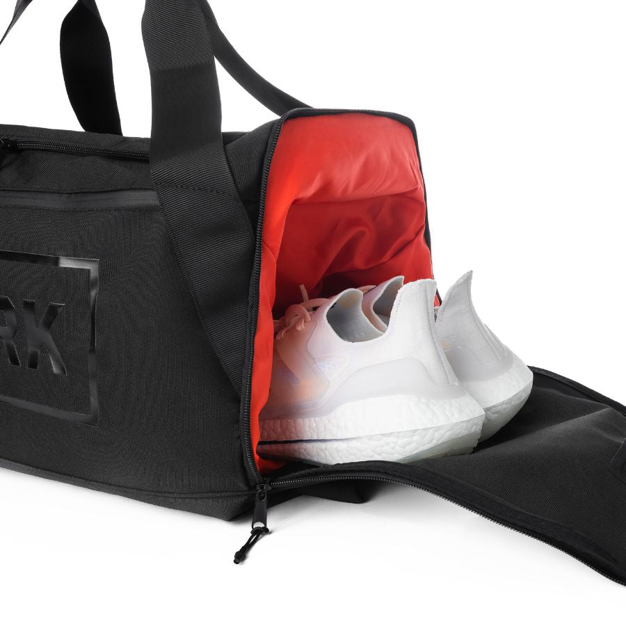 This bag boasts heavy-duty material with robust metal clasps, ensuring durability. The shoe compartment features four air holes near the bottom, ideal for airing out stinky gym shoes. The side compartments, designed to hold a soccer ball or basketball, come with adjustable straps and secure metal clasps, preventing items from falling out.